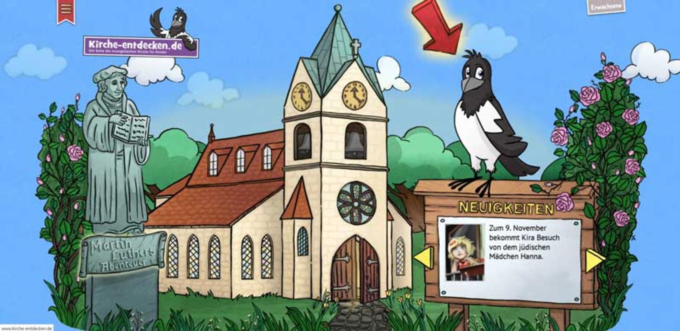 Auf der Webseite kirche-entdecken.de können Kinder spielerisch etwas über den christlichen Glauben und andere Religionen erfahren. Die Kirchenelster Kira nimmt die Mädchen und Jungen mit auf eine Entdeckungsreise vom Keller bis zum Dachboden des virtuellen Kirchenraumes. Die evangelische Webseite ist mehrfach prämiert worden.